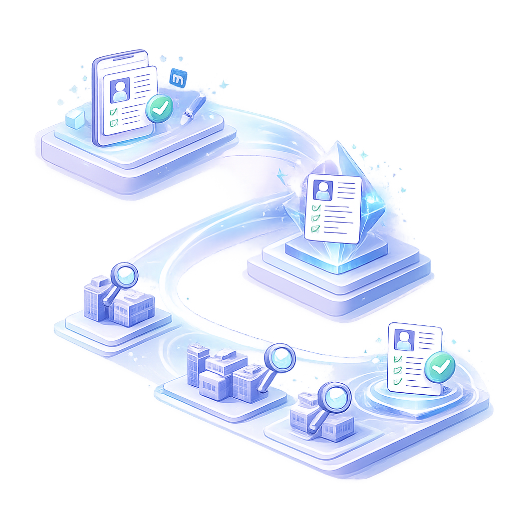 Create your profile once, sharpen your resume with free AI tools, and let employers come to you. No applications. No cover letters.